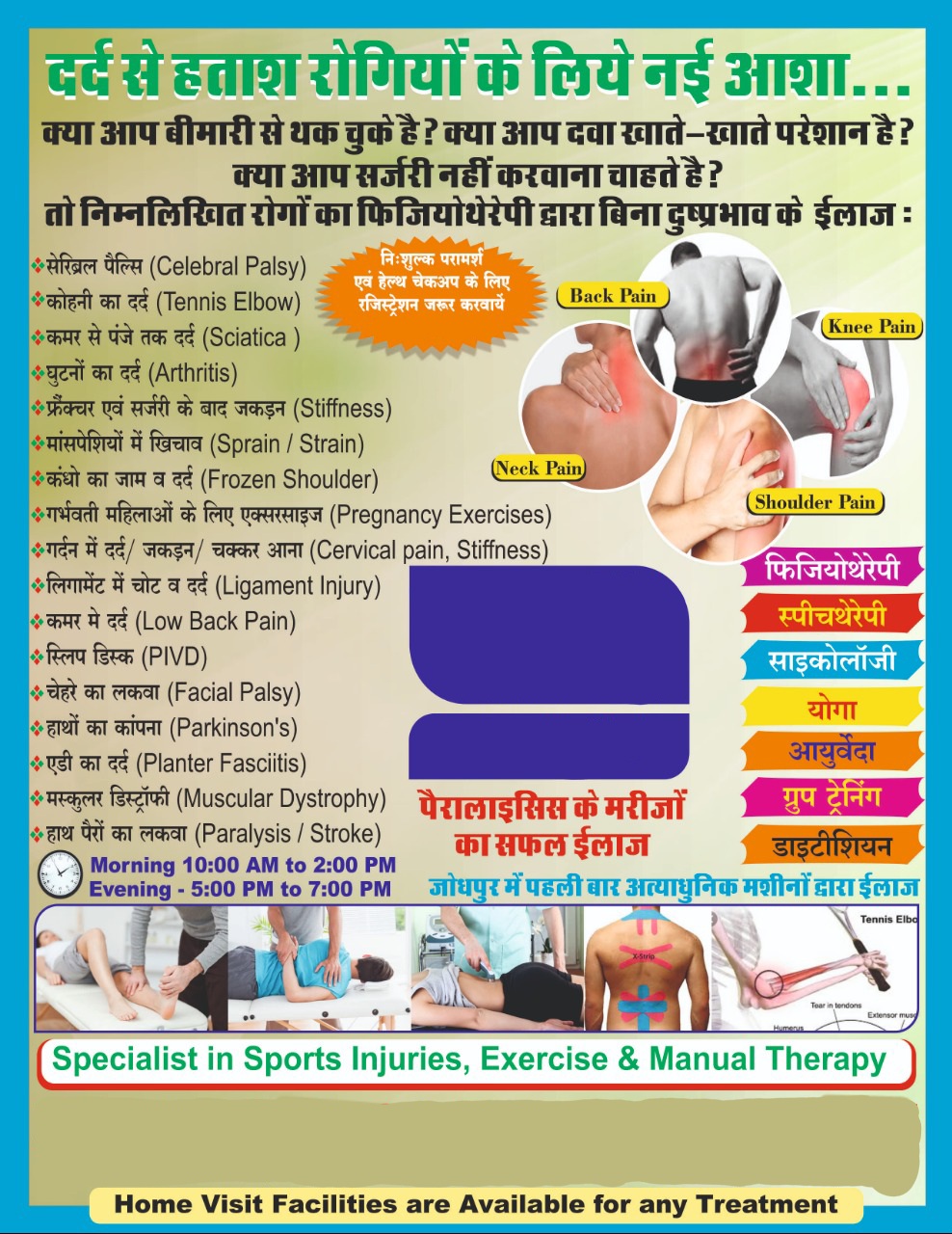 राधेश्याम जोड़ो के दर्दआई आई टी जोधपुर के डॉक्टर प्रकाश जाखड़ ने मेरी मां को कुछ शारीरिक व्यायाम सिखाए हैं, जो कि वह नियमित रूप से करती रही हैं – और ये व्यायाम काफी मददगार रहे हैं, उनकी पैर की मांसपेशियों को मजबूत बनाने और दर्द कम करने में, चलने के दौरान और बिस्तर पर बैठे हुए। वह अब बिना किसी दर्द के, अधिक समय तक बिस्तर पर बैठने में सक्षम है। मैं डॉ प्रकाश जाखड़ को सबसे अच्छे फिजियोथेरेपिस्ट के रूप में देखता हूं। रोगी की भलाई के लिए उनकी अभूतपूर्व क्षमता और कौशल, उनकी सहानुभूति और निष्ठा,उन्हें एक असाधारण व्यक्ति बनाते हैं।जयवीर सिंह